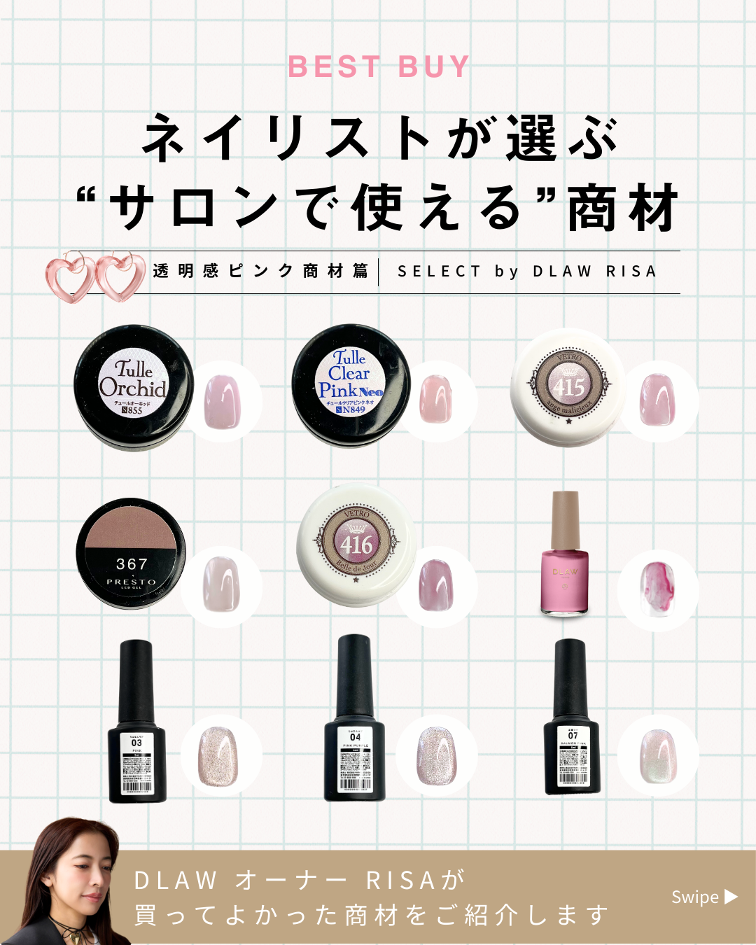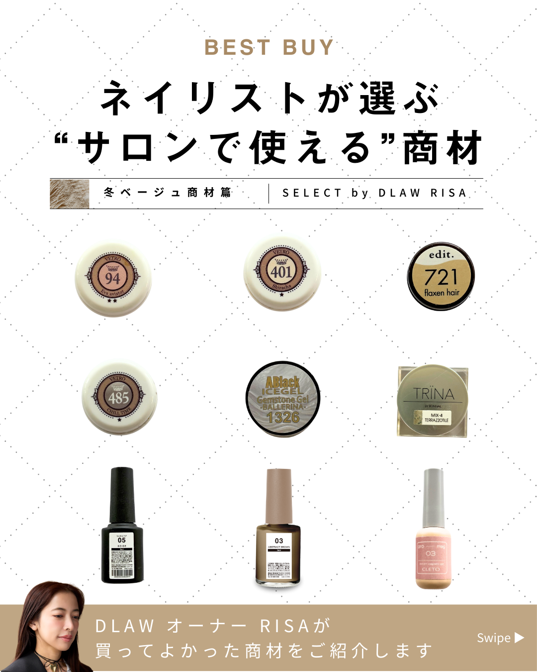 昨年もさまざまなネイル商材が登場しましたね!今回は、ネイルサロンDLAWディレクターのAYUKAが実際に使ってみて「買ってよかった!」と感じたアイテムを厳選してご紹介します。お客様への施術のクオリティを上げたい方や、新しいトレンドアイテムを探している方の参考になれば幸いです。プロ向け商材から初心者でも使いやすいものまで、注目アイテムをチェックしてみてくださいね。