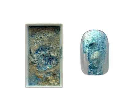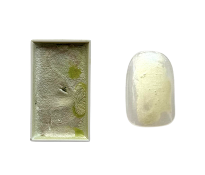青みの中に黄色の変更パールが入ってる顔彩。すこし固めの顔彩の質感が出しやすいのでアートのポイントとして利用するにはおすすめな顔彩です!