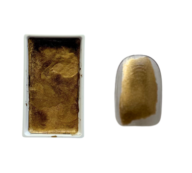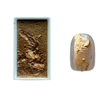 赤みのある金で光沢が強いので少量のせるだけでもポイントに使える顔彩です!凹凸をつけながらのせるだけで鉱物を表現することができるのでおすすめです!