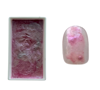 ピンクの中に青の偏光パールが入っている顔彩。カラーでアートした上にのせるだけで一癖あるデザインになります!