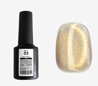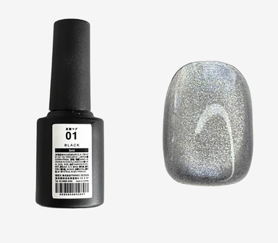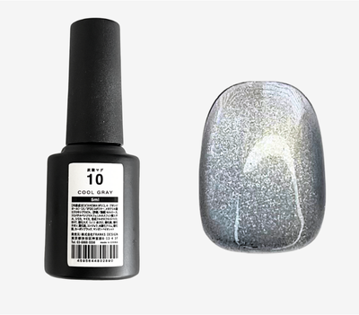 イエローの偏光ラメが混ざったひんやりとしたグレーカラーのマグネットジェル。他にはない特徴的な色合いとなっております!