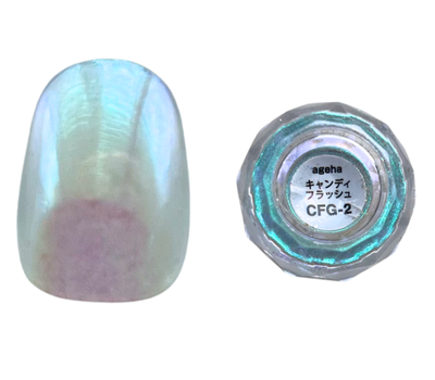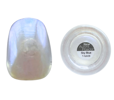 ホワイトブルーのオーロラパウダー。パール感があり優しい光り方が綺麗です。ワンカラーとしても使いやすい商材です!