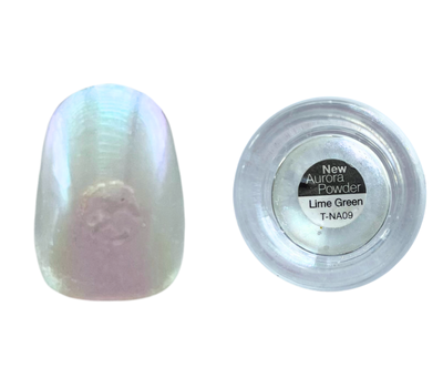 ライムグリーンのオーロラパウダー。こちらもこれからの時期にぴったりのカラーです!角度によってピンク色に光ります!
