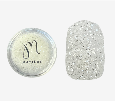 シュガーパウダーに近い質感。ホワイトの中にシルバーみもあるのでキラキラ度に高まります◎
