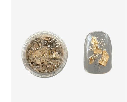 チョコの上にかかっている金箔のような光沢のあるグリッターです。サイズが不揃いなのでのせるだけでも簡単にボリュームが出せます!