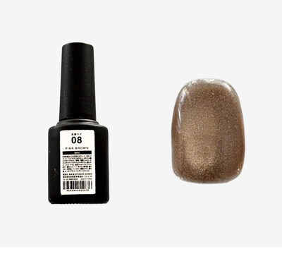 ブラウンの中に薄っすらピンクのマグネットが組み合わさったジェルです。透け感のあるブラウンなので赤との相性も抜群です◎