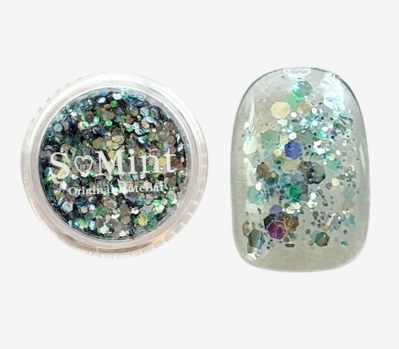 様々なサイズや光が入っているホログラム。ブルーすぎずのせる量をかえるだけで抜け感も出せるのでブルーが好きな方におすすめです♩