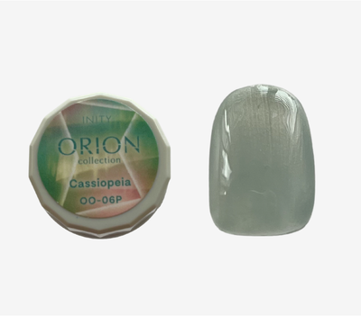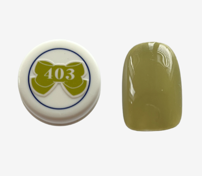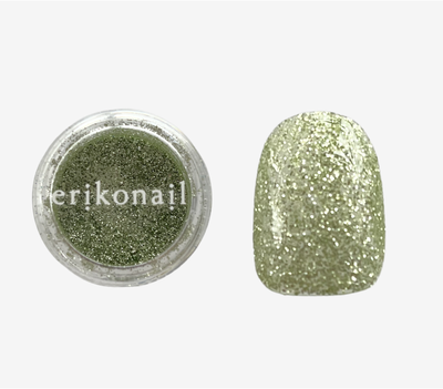 細かい偏光パールの入ったカラージェル。グリーンに暖色の混じったなんとも言えないニュアンスカラーです◎